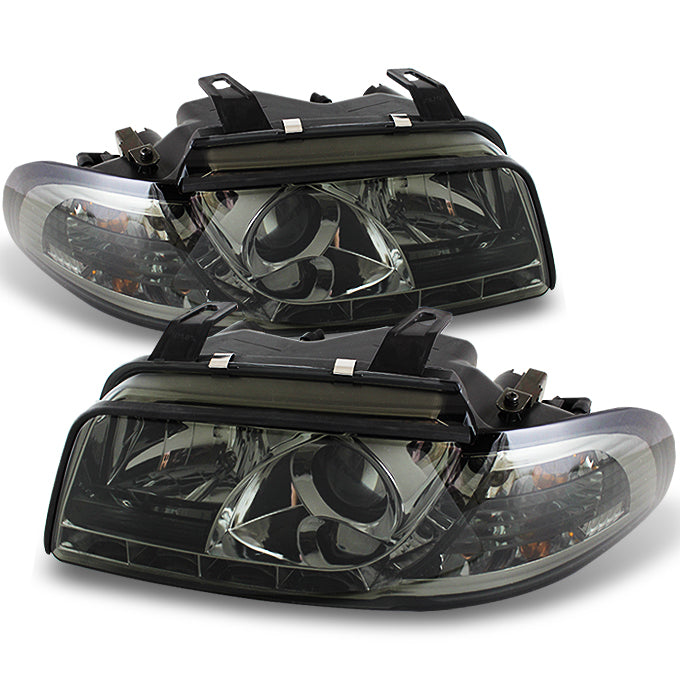 AKKON - For Audi A4 B5 Sport Sedan Smoked Smoke DRL Daytime LED Strip Projector Headlights Lamps Left + Right