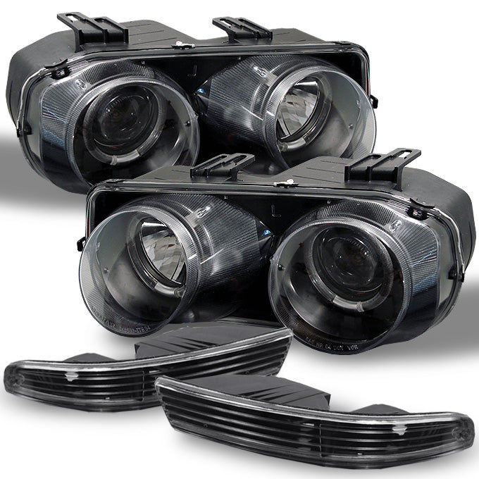 Fits 94-97 Integra Black Halo Projector Headlights+Black Bumper Signal Lights