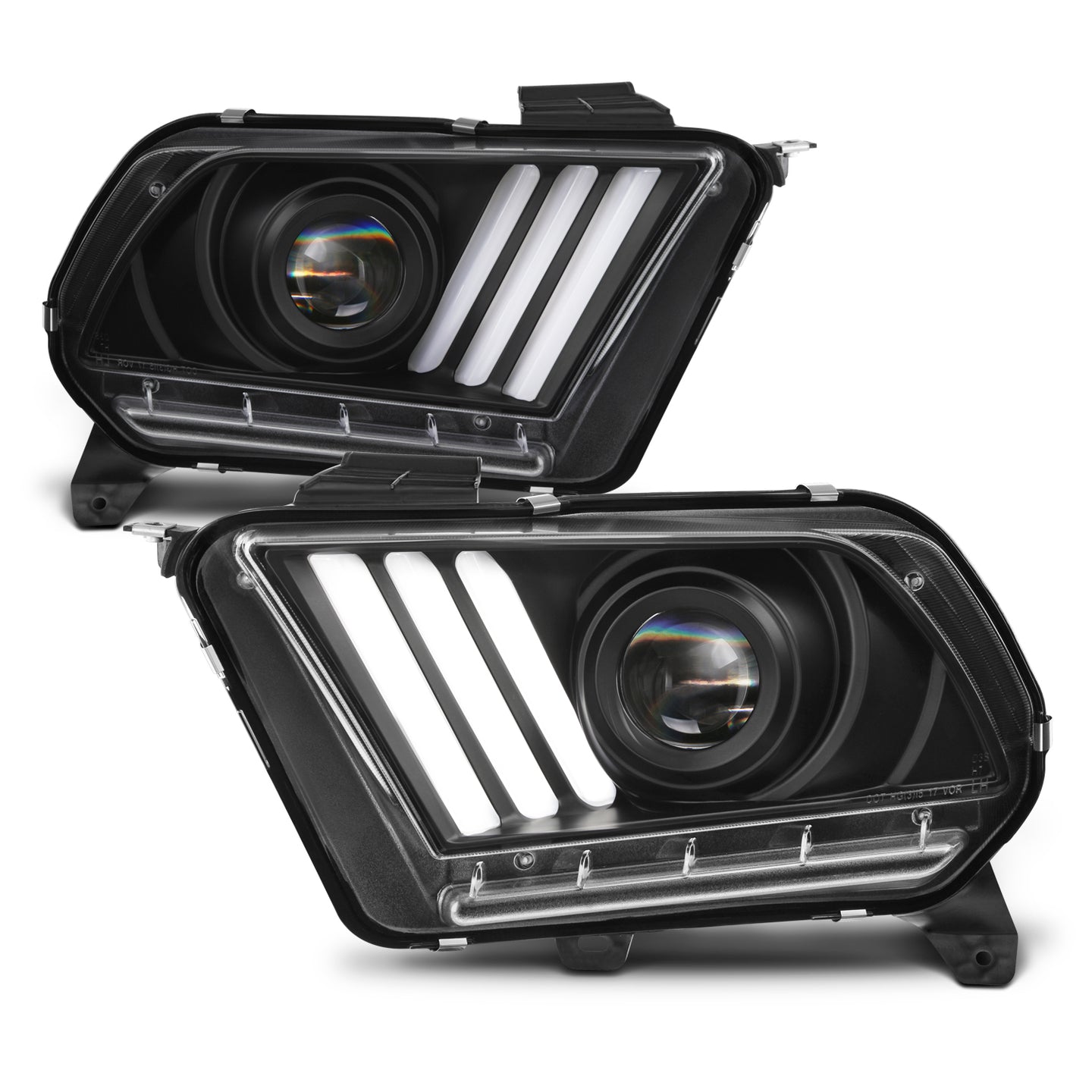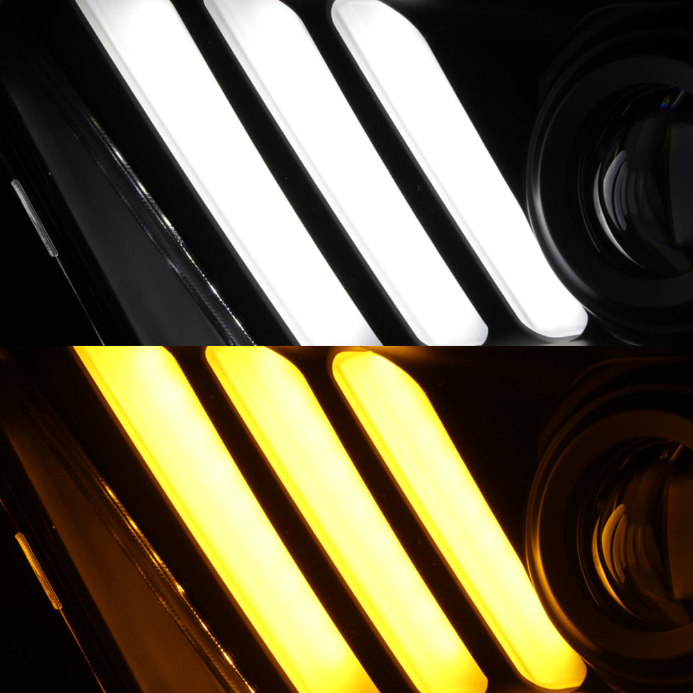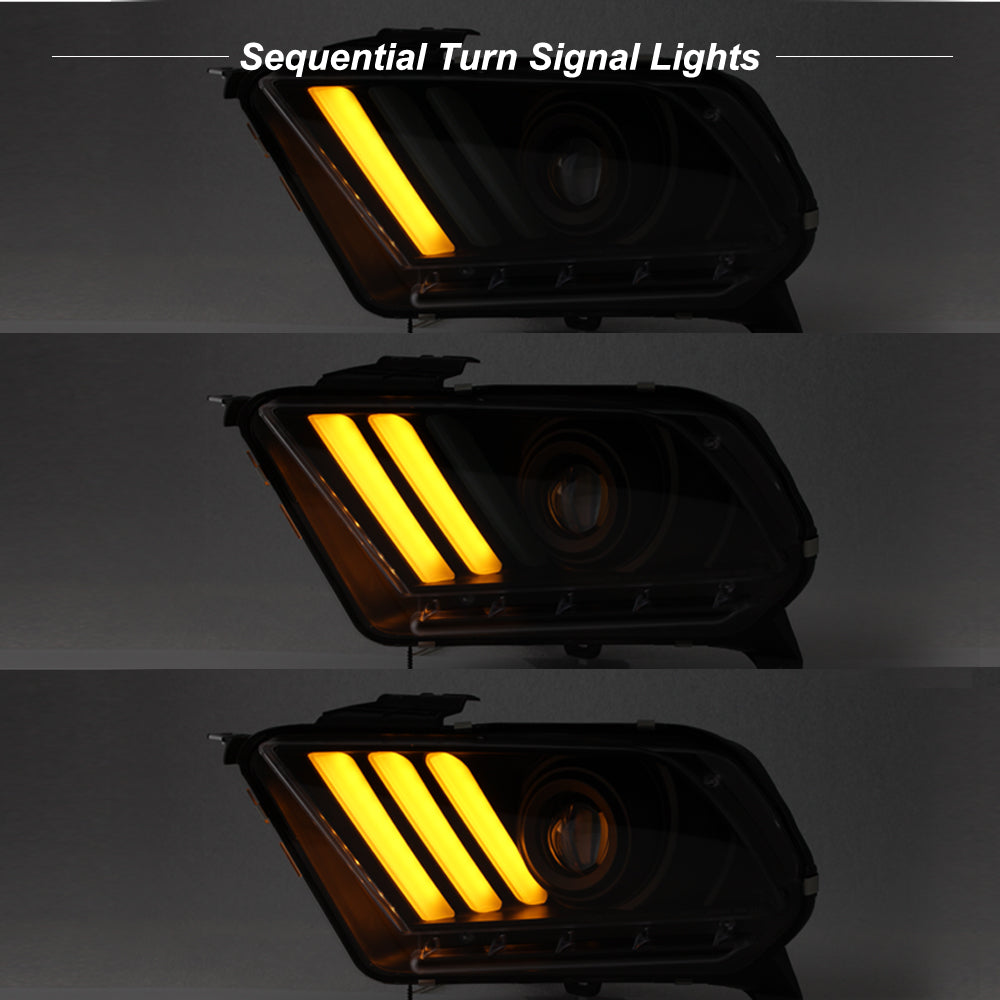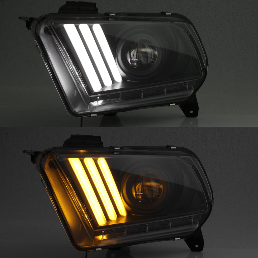AKKON - For 2010-2013 Ford Mustang [HID Style] LED Daytime Running Lamp Bar w/Sequential Turn Signals Projector Black Headlights