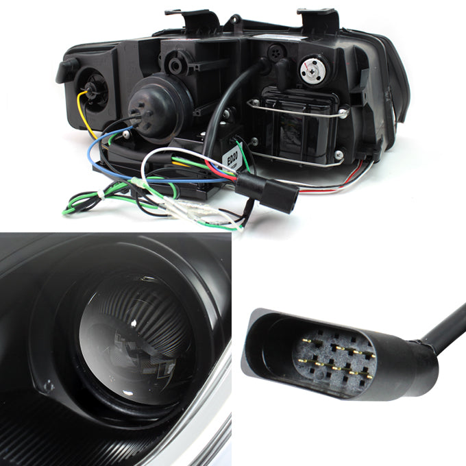AKKON - For 2002-2005 Audi A4 S4 Black Bezel DRL Daytime LED Light Tube Bar Design Projector Headlights Lamps Left+Right Pair