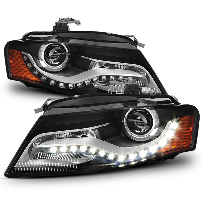 AKKON - For [Halogen Upgrade] 2009 - 2012 A4 S4 B8 Black Bezel Projector Headlight Lamp W/ LED DRL Daytime Running Light