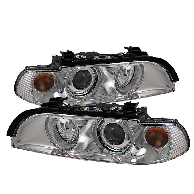 AKKON - For BMW E39 5-Series 525i 528i 530i 540i Dual Halo Projector Chrome Clear Headlights Lamps W/Factory Halogen Only