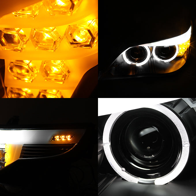 AKKON - For BMW E60 5 Series Black Bezel HID Type Dual Halo Projector Headlights w/Full LED Turn Signal Pair