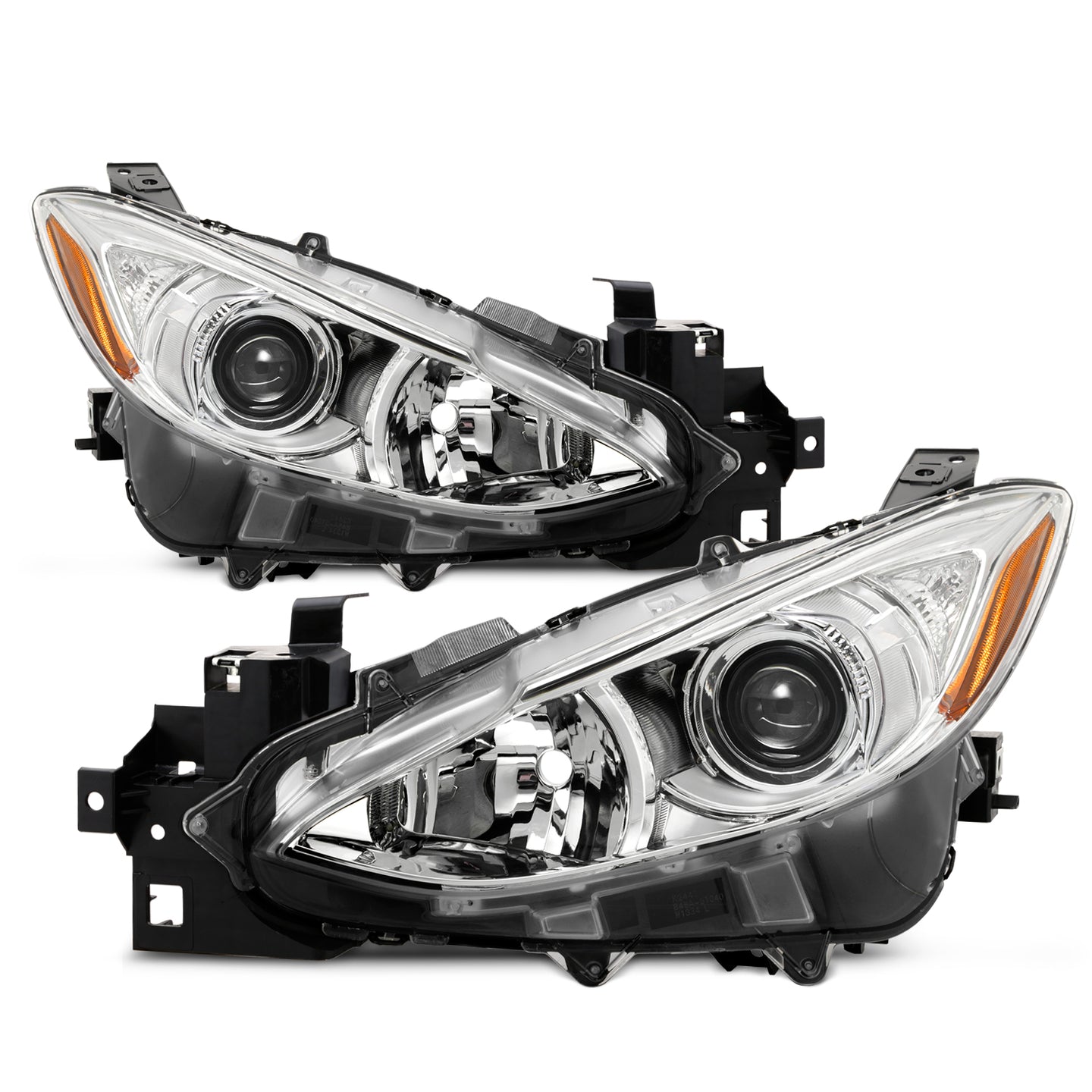 AKKON - Fits 2014-2016 Mazda 3 [OE Halogen Type] Projector Chrome Headlights Headlamp Driver Left+Passenger Right Pair