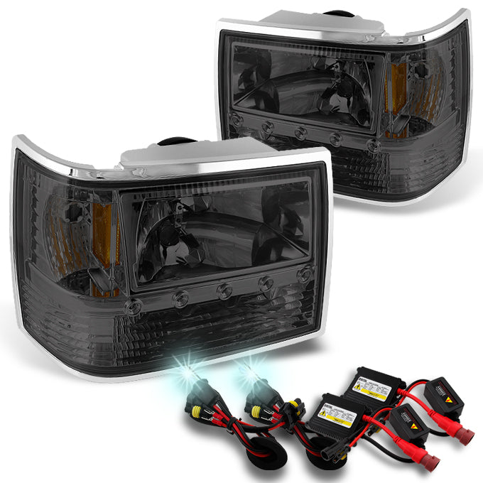 AKKON - For 93-98 Grand Cherokee Smoke 1 Piece LED Headlights/Corner Signal/Bumper Lamps +8000K HID Xenon Kit