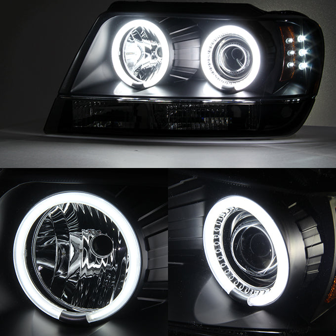 AKKON - For Jeep Grand Cherokee Black Smoke CCFL Halo Ring Projector LED Replacement Headlights LH/RH Head Lamps