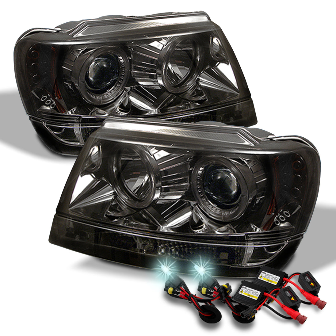 AKKON - For Jeep Grand Cherokee Smoked Smoke Dual Halo Ring Projector LED Headlights Head Lamps+8000K HID