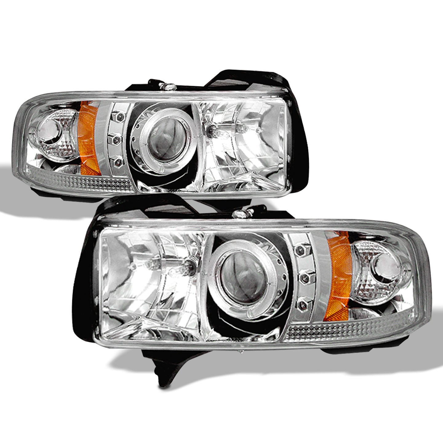 AKKON - For Dodge Ram 1500/2500/3500 Pickup Clear Dual Halo Ring LED Projector Replacement Headlights + Tail Light Set