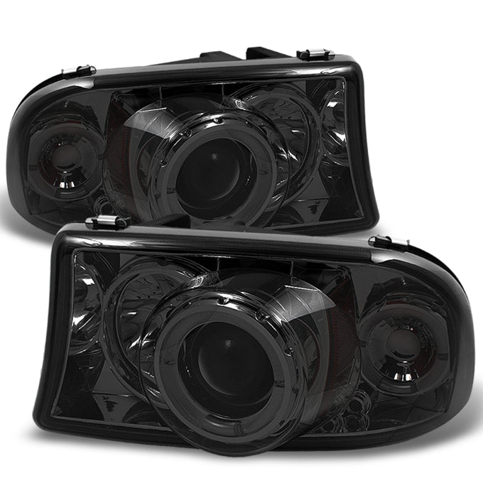 AKKON - For Dakota Durango Pickup Truck Smoked Smoke Dual Halo Ring Projector Headlights Replacement Pair