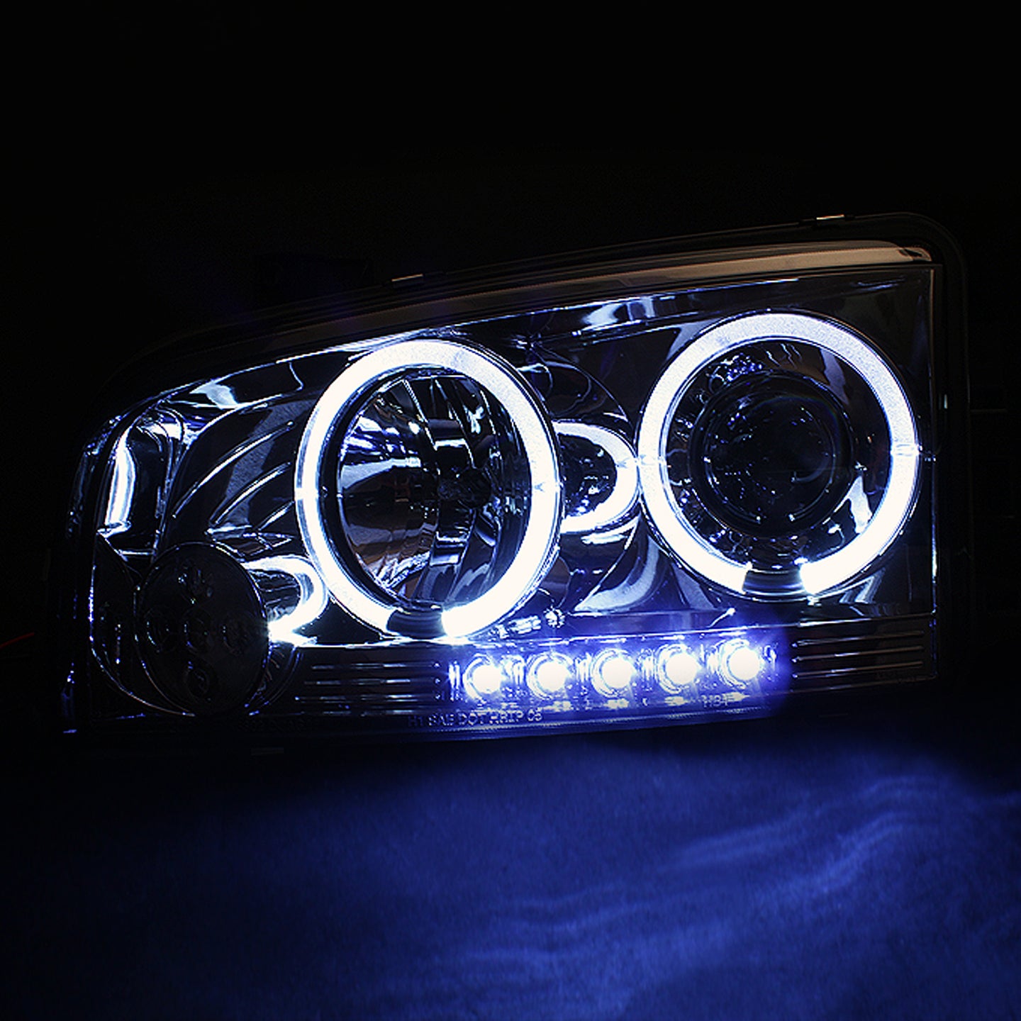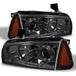 AKKON - For 06-10 Dodge Charger All Model Smoked Dual Halo Projector LED Headlights + Black Corner Signal Lamps