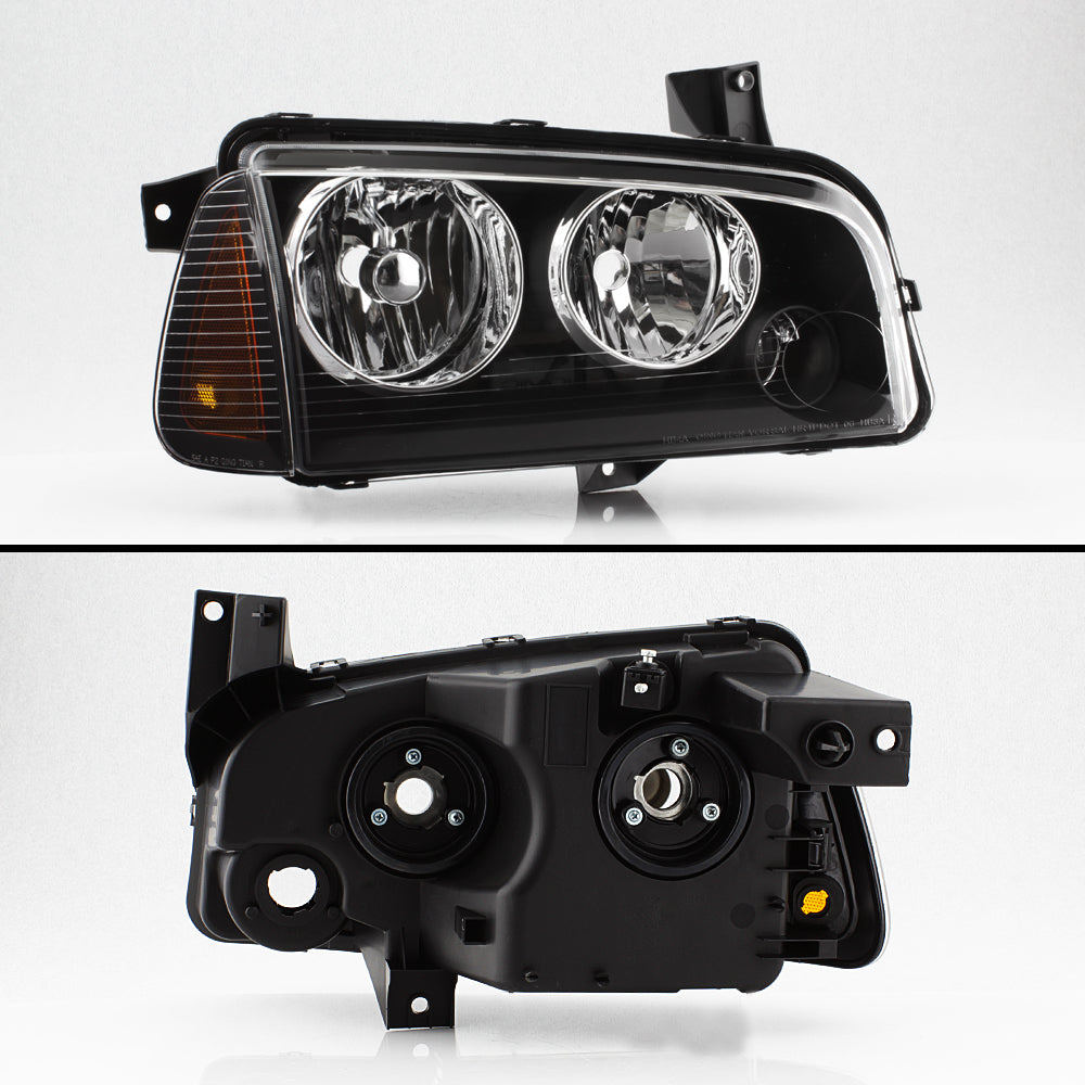 AKKON - For 2006-2010 Dodge Charger Black Headlights + Amber Corner Signal Lights (Left and Right) Raeplacement