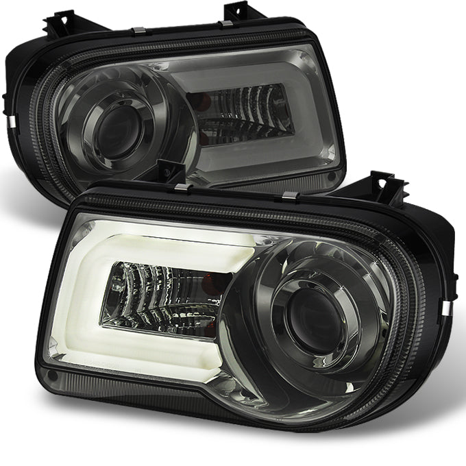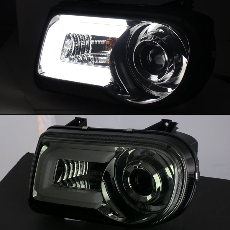 AKKON - For Chrysler 300C Sedan Halogen Type Smoked Smoke DRL LED Light Tube Design Projector Headlights Lamps