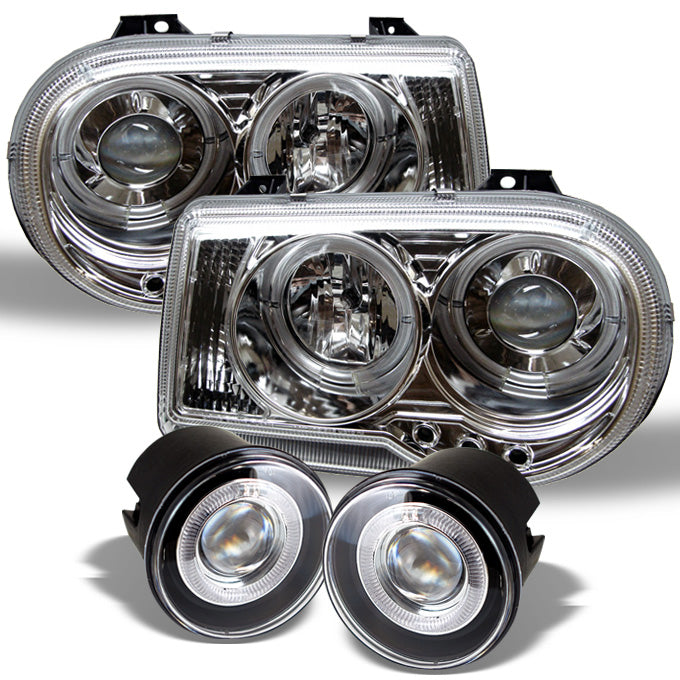 AKKON - For 2005-2010 Chrysler 300C Halo Projector LED Headlights+ Halo Projector Fog Lights W/Switch Pair Combo