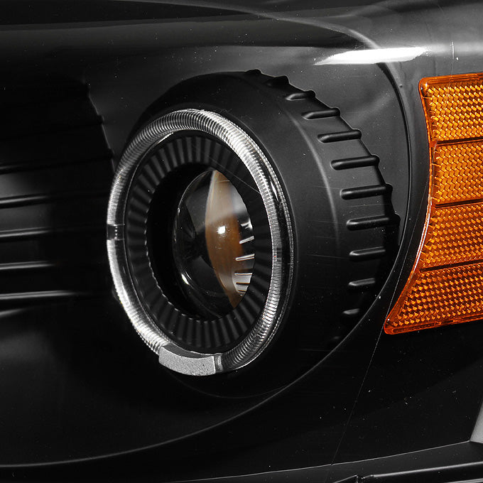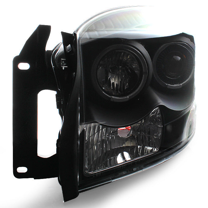 AKKON - For Ram Pickup Truck Black Bezel Dual Halo Ring DRL Daylight LED Projector Headlights Replacement Pair