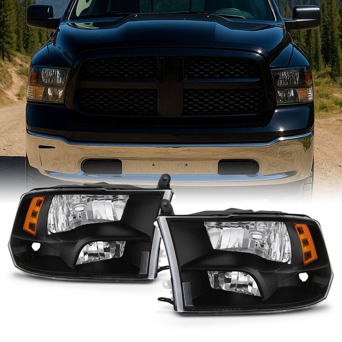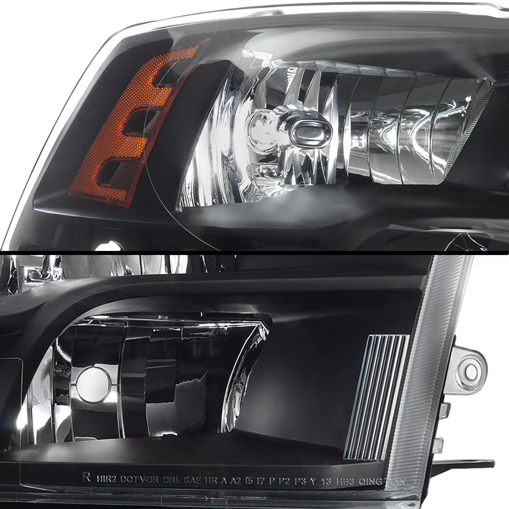 AKKON - For [Quad Style] 2009-2018 Dodge Ram 1500 | 10-18 Ram 2500/3500 Black Headlight Driver + Passenger Side