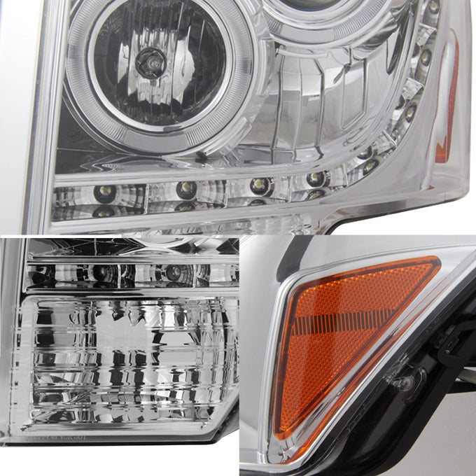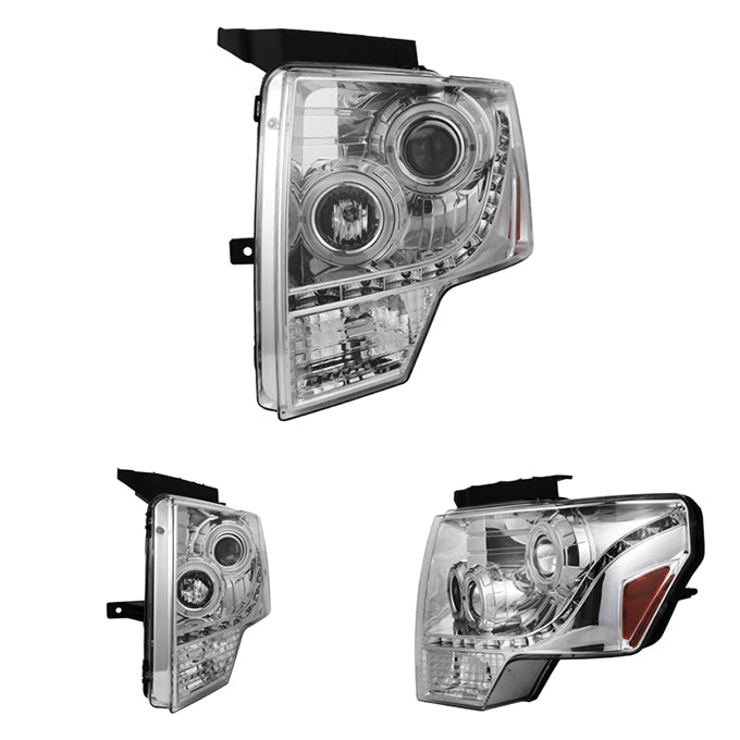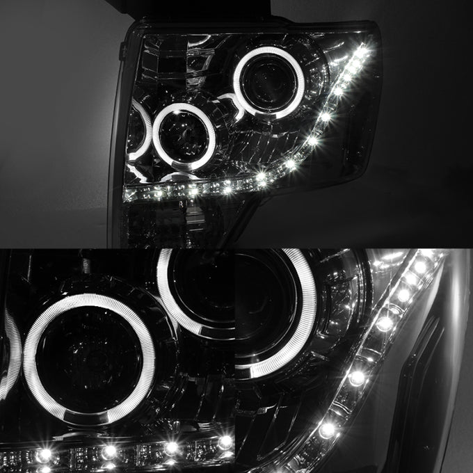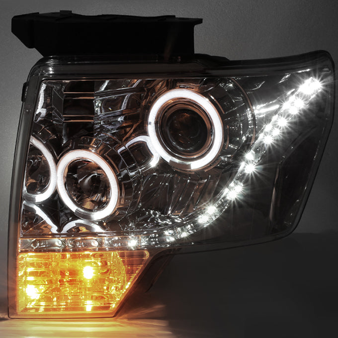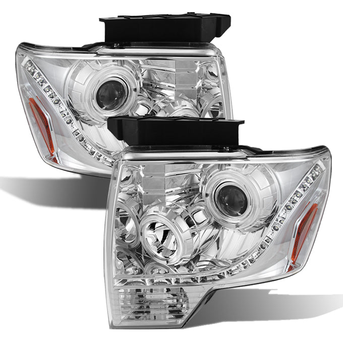AKKON - For F150 Pickup Truck Chrome Clear Dual Halo Ring DRL Daylight LED Projector Headlights Replacement Pair