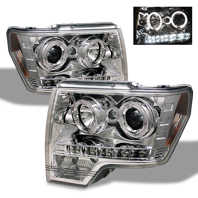 AKKON - For Ford F150 F-150 Pickup Chrome Dual LED Halo Projector Headlights Housing
