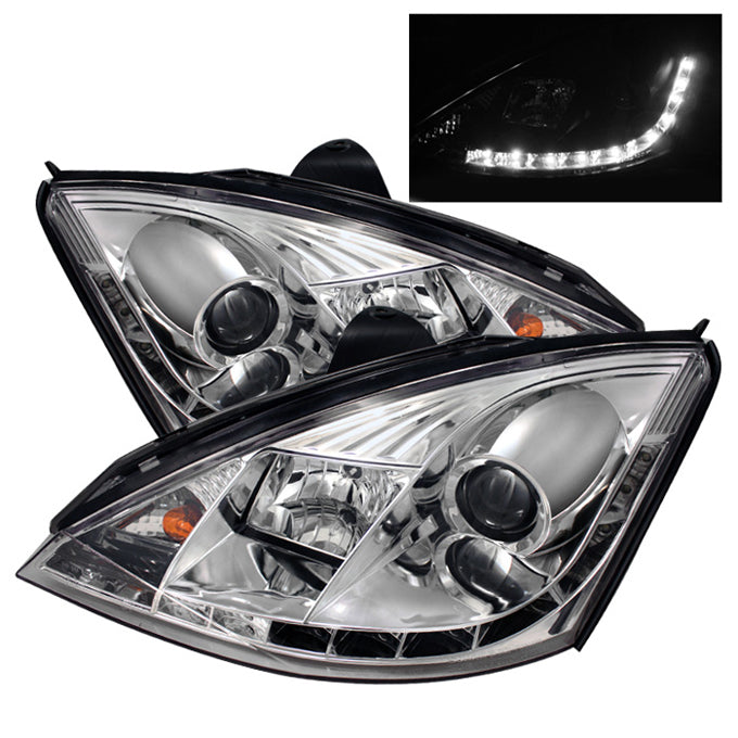 Fits 00-04 Ford Focus Chrome R8 Style DRL Daylight LED Projector Headlights Lamp