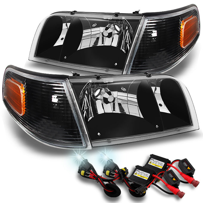 AKKON - For Ford Crown Victoria Black Headlights W/ Corner Lamps 4pc Set + Slim Ballast 6000K White HID