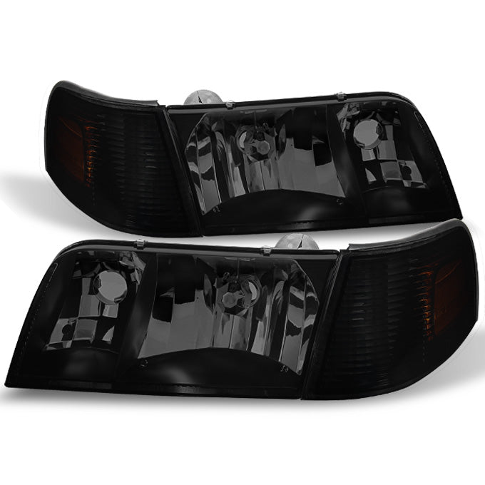 AKKON - For Black Smoke 98-11 Ford Crowd Victoria Headlights Replacement + Corner Signal Light Lamps 4pcs Set