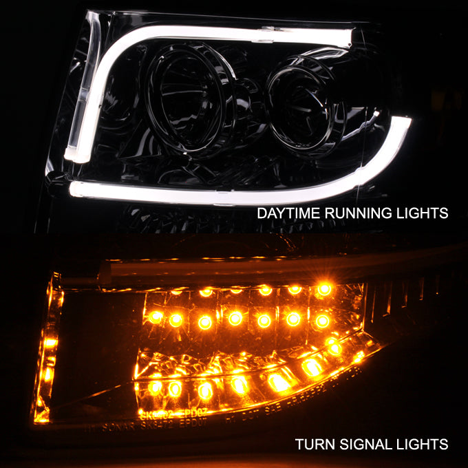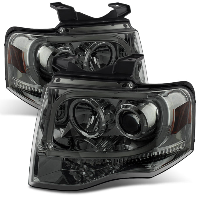 AKKON - For Ford Expedition Smoked Smoke G2 Latest LED Daylight Tube Design Projector Headlights Front Lamps
