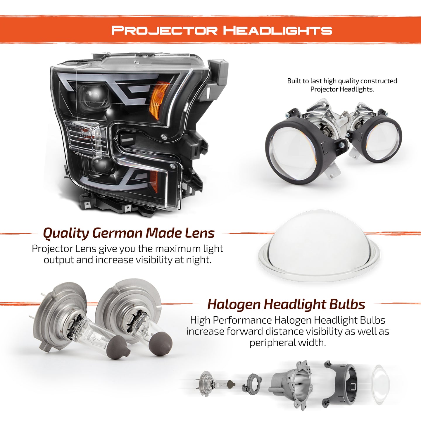 AKKON - For 2015 2016 2017 Ford F-150 Pickup Black Housing Dual LED-DRL Light Bar Projector Headlight