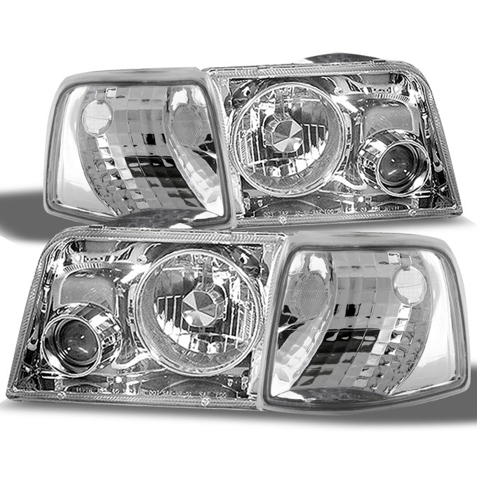 Fits 93-97 Ford Ranger Chrome Projector Headlights Lamps + Corner Signal Lights