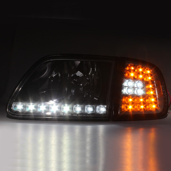 AKKON - For Black Bezel 97-03 F150 97-99 F250 LD Headlights Replacement + LED Corner Signal Light Lamps Set