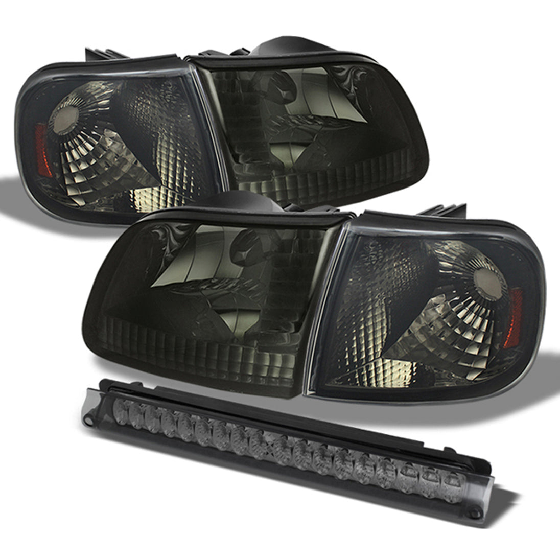 AKKON - Fits Smoked For Ford 1997-2003 F-150 | 2004 F150 Heritage Headlights + Corner Signal + LED 3Rd Brake Light Combo Set