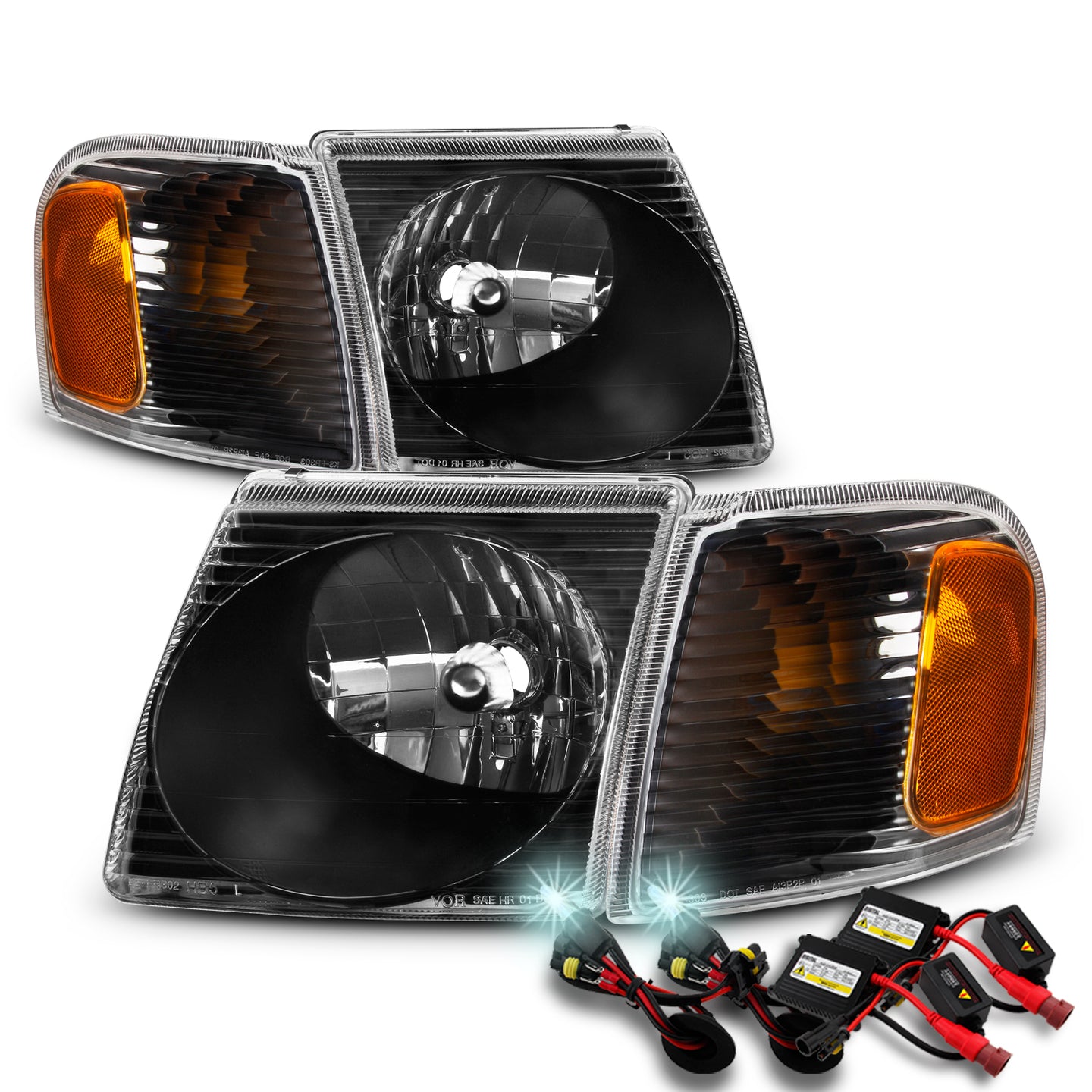 For 01-05 Ford Explorer Sport Trac Black Headlight+Corner Signal Lamp+8000K HID