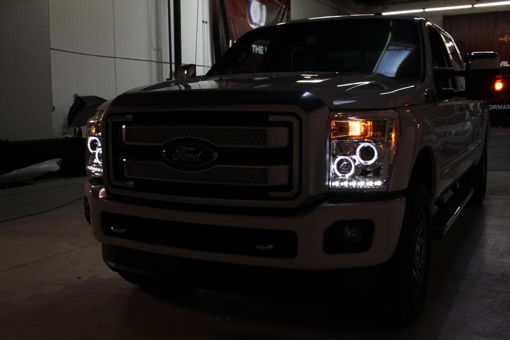 AKKON - For Smoked Ford 11-16 F250 F350 F450 F550 Super duty Dual Halo Projector LED Headlights+ Fog Light