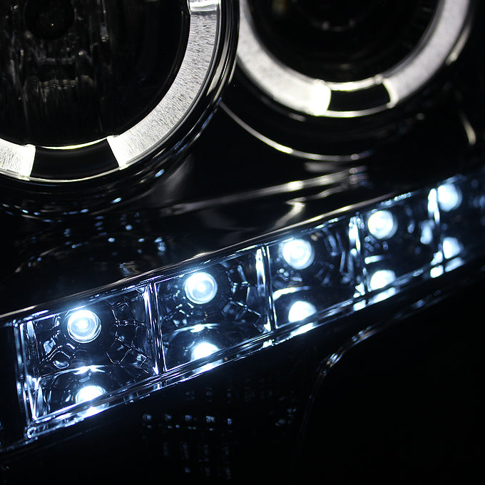 AKKON - For Ford F150 F-150 Pickup Smoked Bezel Dual Halo LED Projector Headlights+LED Tail Lamp Assembly