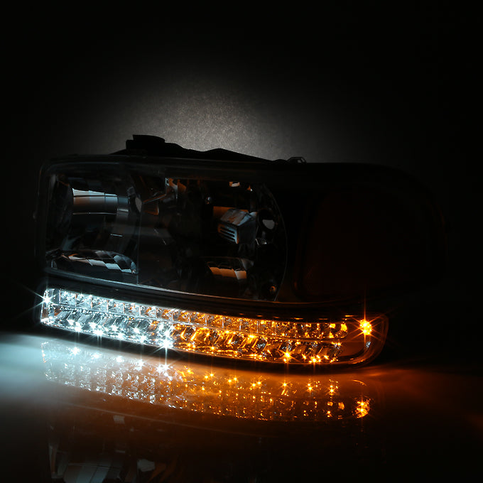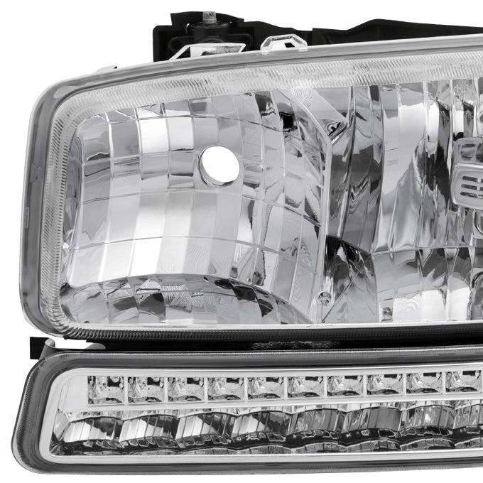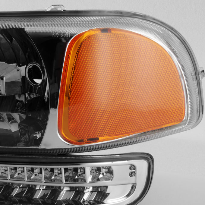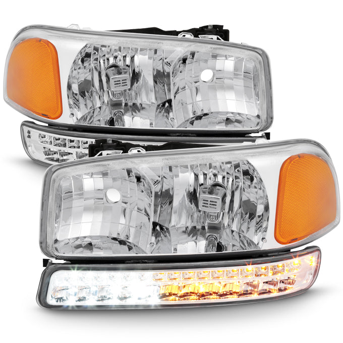 AKKON - For 99-06 Sierra 00-06 Yukon Chrome Clear Headlights Replacement + LED Bumper Signal Light Lamps Set