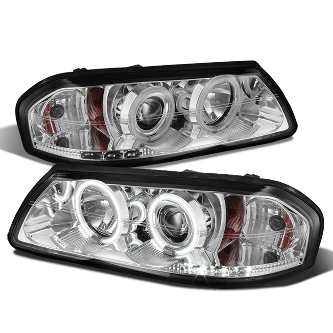 AKKON - For Chevy Impala SS Chrome Clear Dual CCFL Halo Ring LED Design Projector Headlights Front Lamps Pair