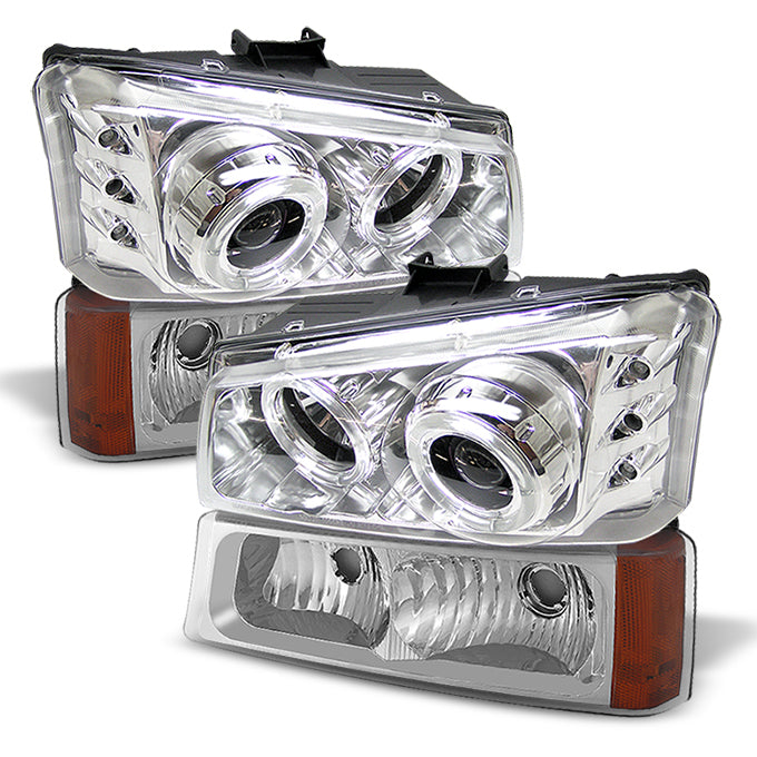 Fits 2003-06 Chevy Silverado Halo Projector LED Headlights + Bumper Signal Lamps