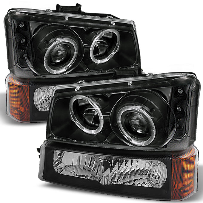 Fits Black 2003-2006 Silverado Avalanche Halo Projector Headlights +Bumper 2004
