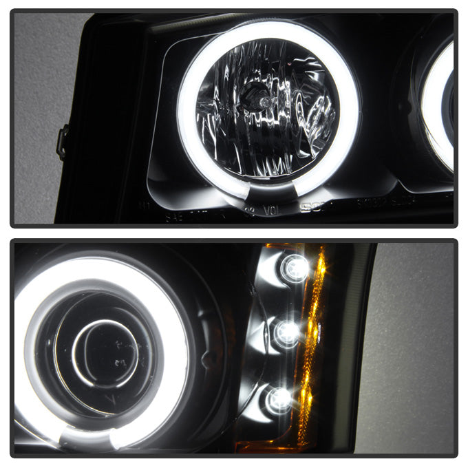 AKKON - For 03-06 Silverado 1500 2500 3500 HD Black Smoked Dual CCFL Halo Projector LED Headlight+ Bumper Lamp