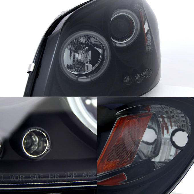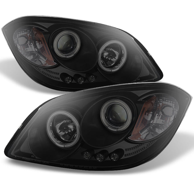 AKKON - For Chevy Cobalt G5 Pursuit Black Smoke CCFL Halo Ring Projector Headlights Front Lamps Replacement Pair