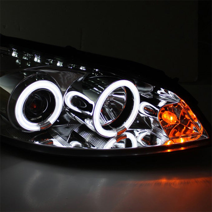 AKKON - For Impala Monte Carlo Chrome Clear Dual CCFL Halo Ring LED Design Projector Headlights Front Lamps Pair