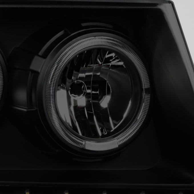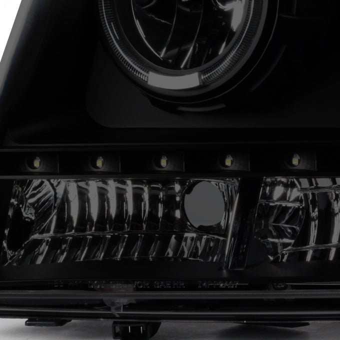 AKKON - For [Dual LED Halo Ring] 2007-2014 Chevy Suburban | Tahoe | Avalanche Black Smoked Lens Projector Headlights Lamps Pair