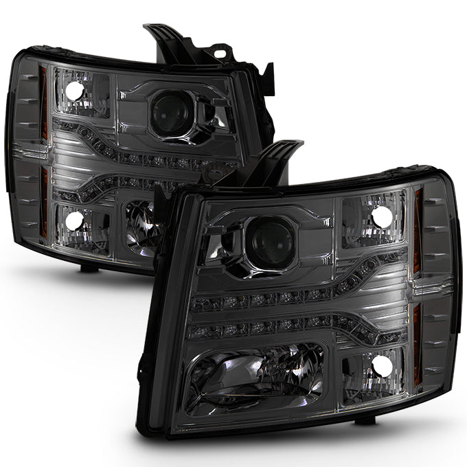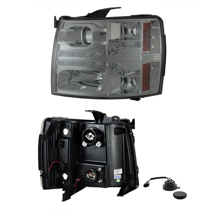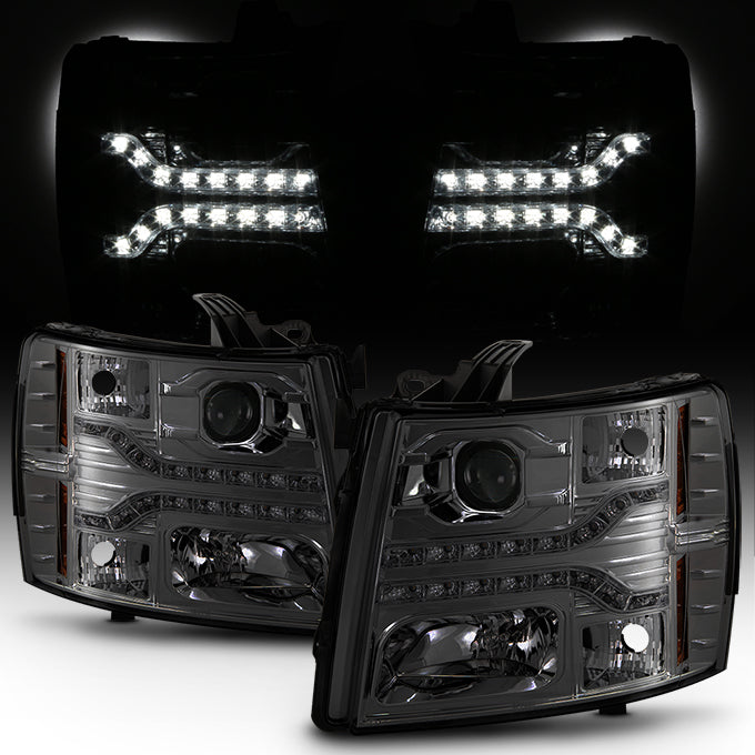 AKKON - For GMT900 Chevy Silverado Pickup Truck Dual LED DRL Smoked Lens Projector Headlights Lamps