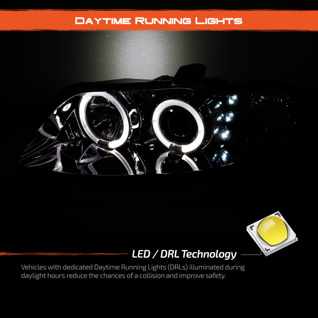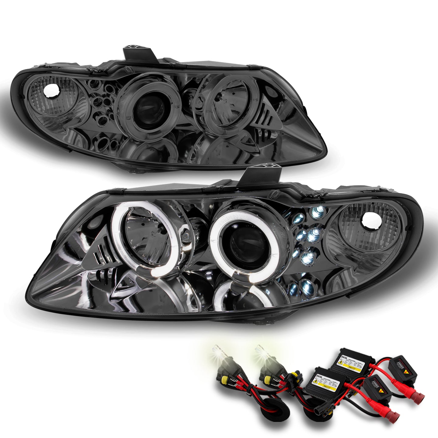 AKKON - For Pontiac GTO Smoked Smoke Dual Halo Ring Projector Replacement Headlights Front Lamps Left/Right Pair + 4K HID