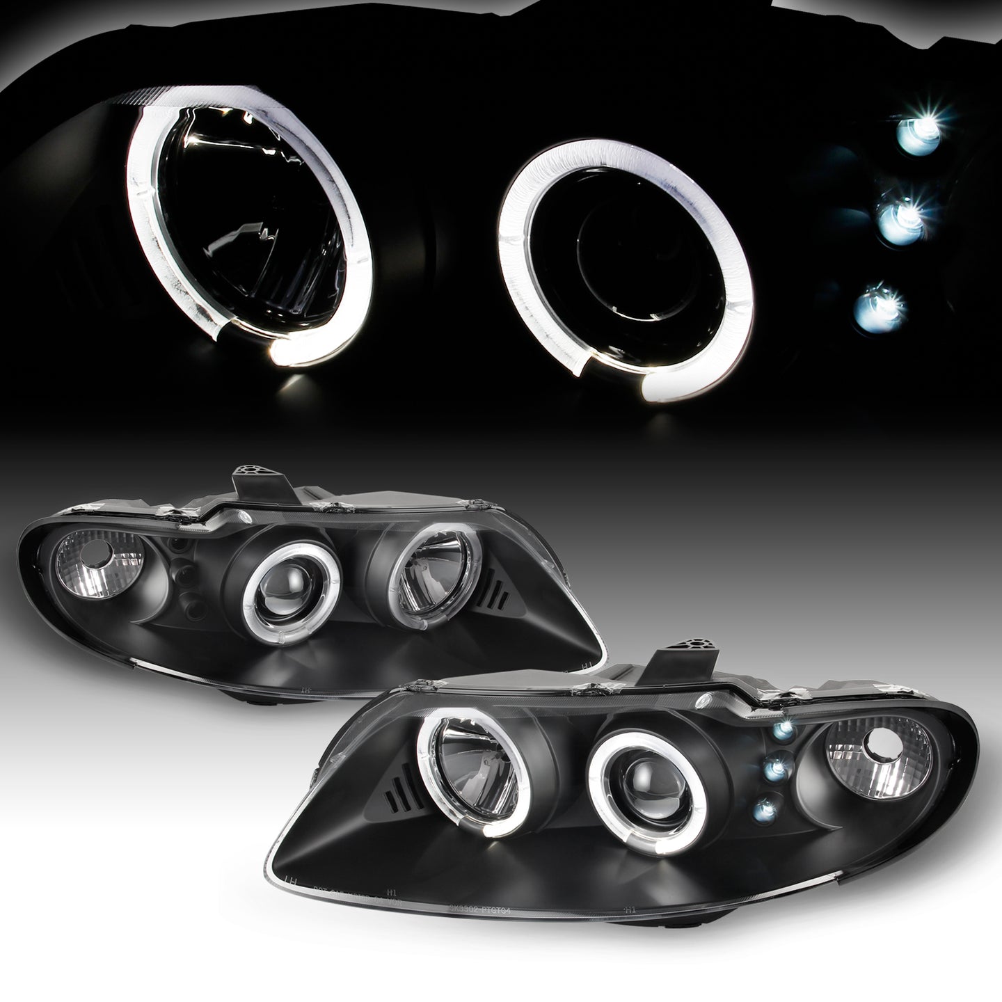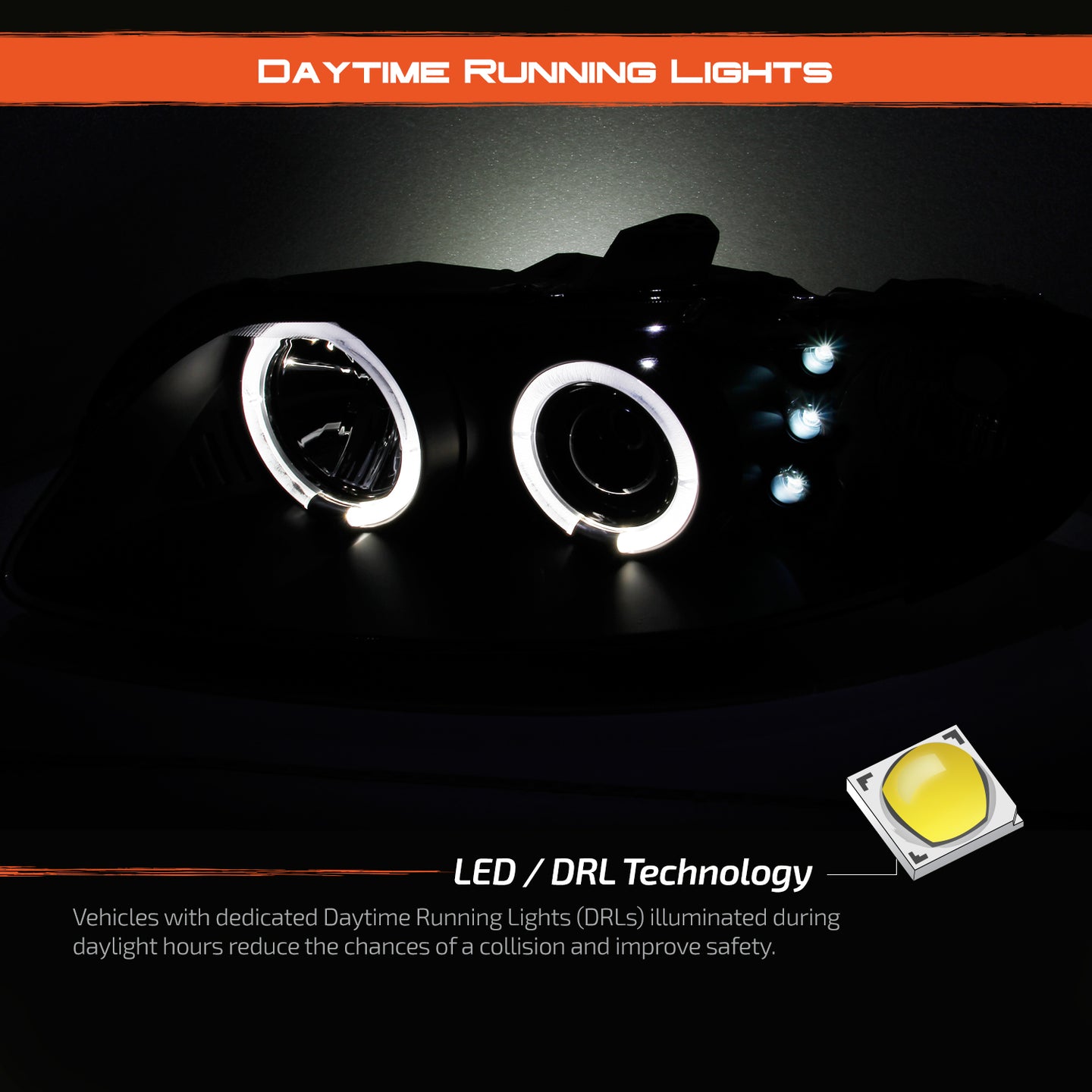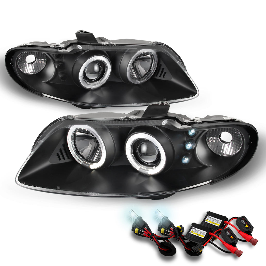 AKKON - For Pontiac GTO Black Bezel Dual Halo Ring Projector Replacement Headlights Front Lamps Left/Right Pair + 6K HID