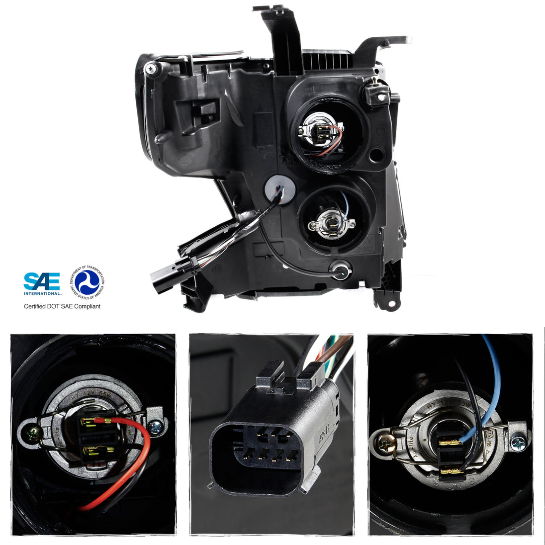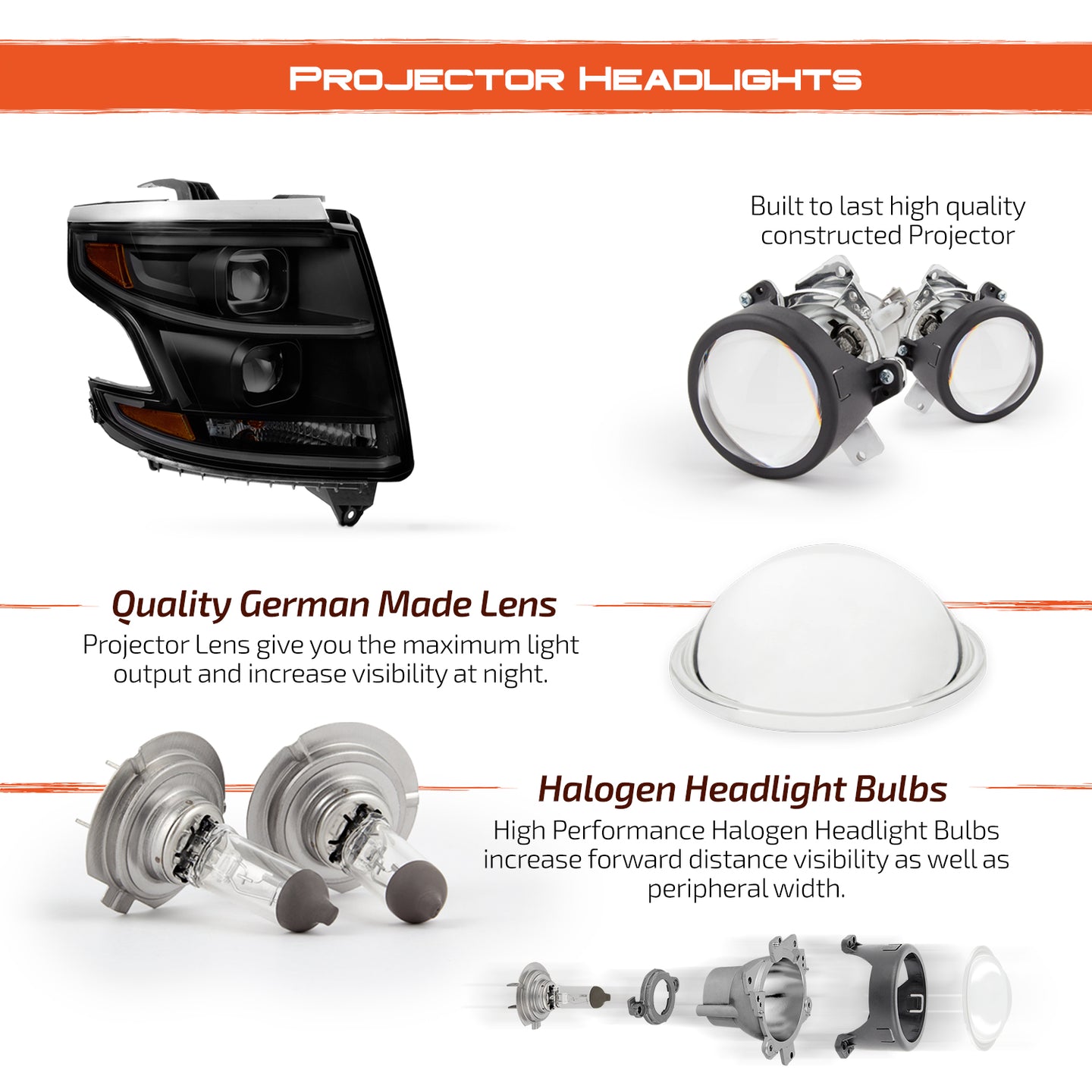 For 15-20 Suburban Tahoe LED DRL Tube Blk Smoke Projector Headlights+6000K HID