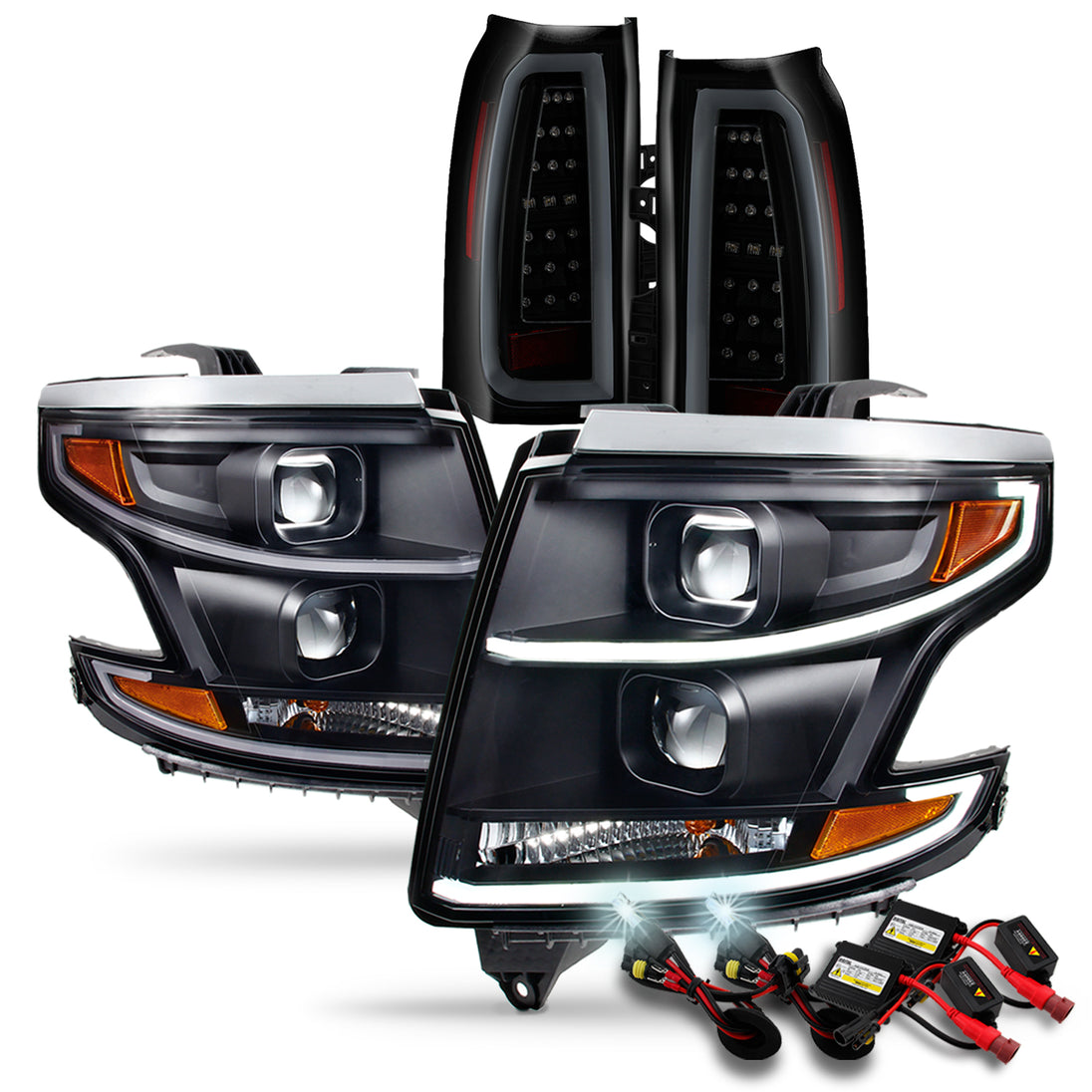 For 2015-2020 Suburban Tahoe DRL Projector Headlight+Smoke LED Tail light+6K HID