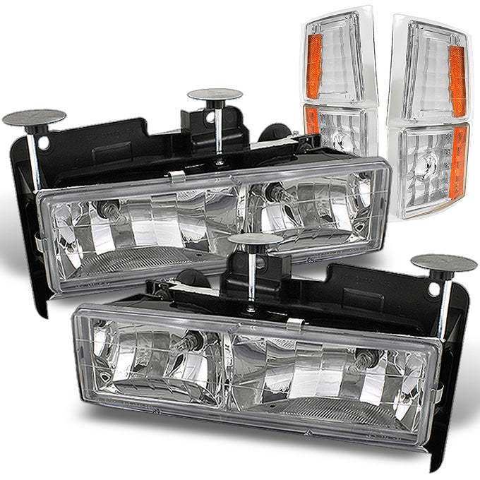 Fits 94-98 C/K Series Suburban Tahoe Real Glass Headlights+ Amber Corner Signal