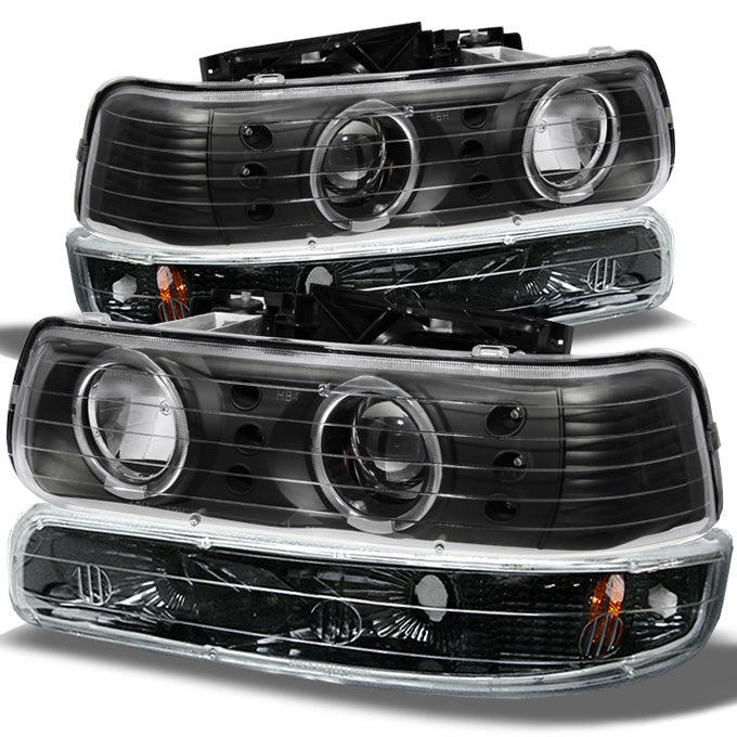 Fits 99-02 Silverado Black Halo Projector LED Headlights+Black Bumper Signal