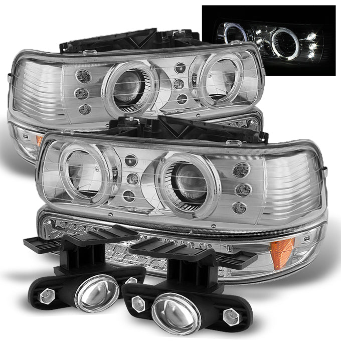 Fits 99-02 Silverado Halo Projector Headlights+Bumper Signal+LED Projector Fog