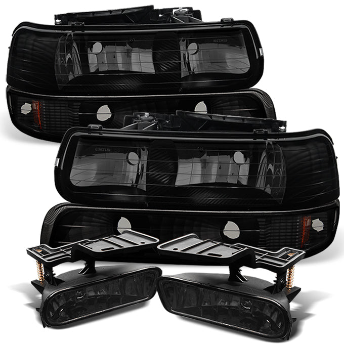 AKKON - For Chevy Silverado Pickup Truck Black Smoked Headlights Lamps + Bumper Smoked Fog Lights Combo