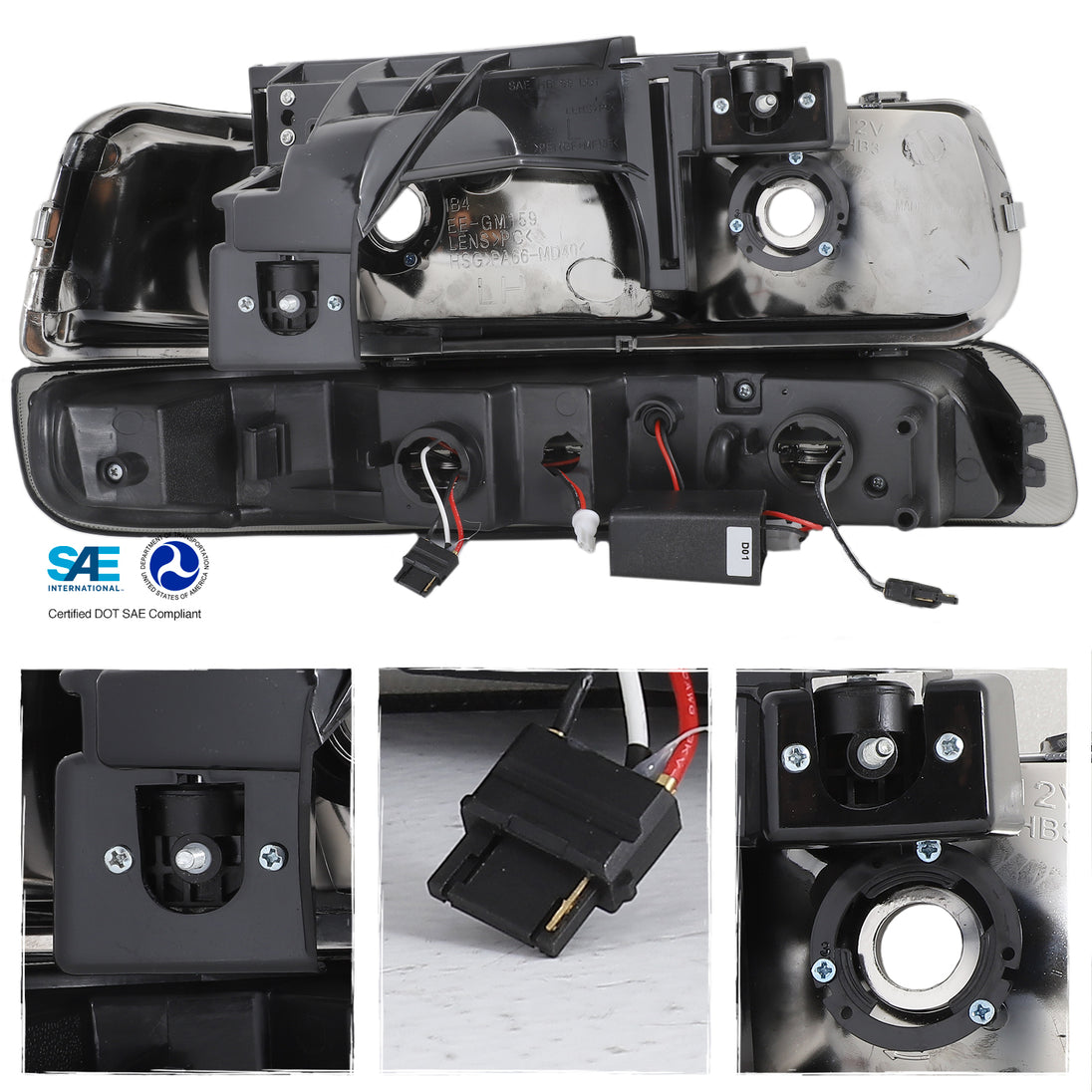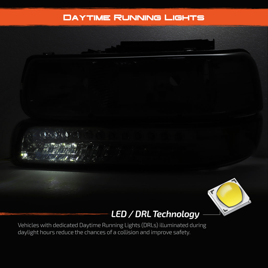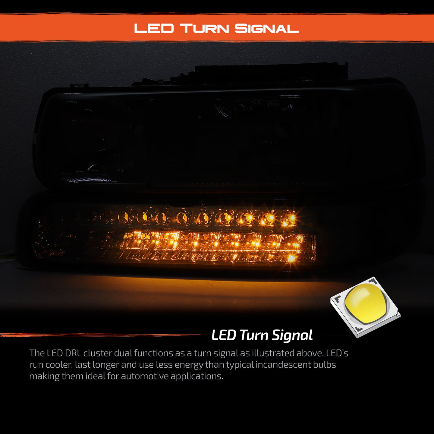 AKKON - For Smoked Smoke 99-02 Chevy Silverado Headlights Replacement + LED Bumper Signal Lights 4pcs Set
